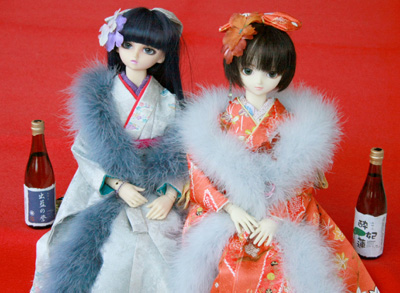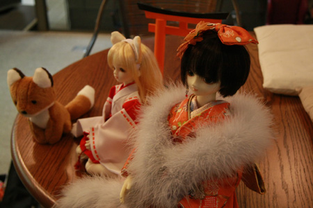 ドールは狐耳のかぶりもの巫女さんのコスチュームに